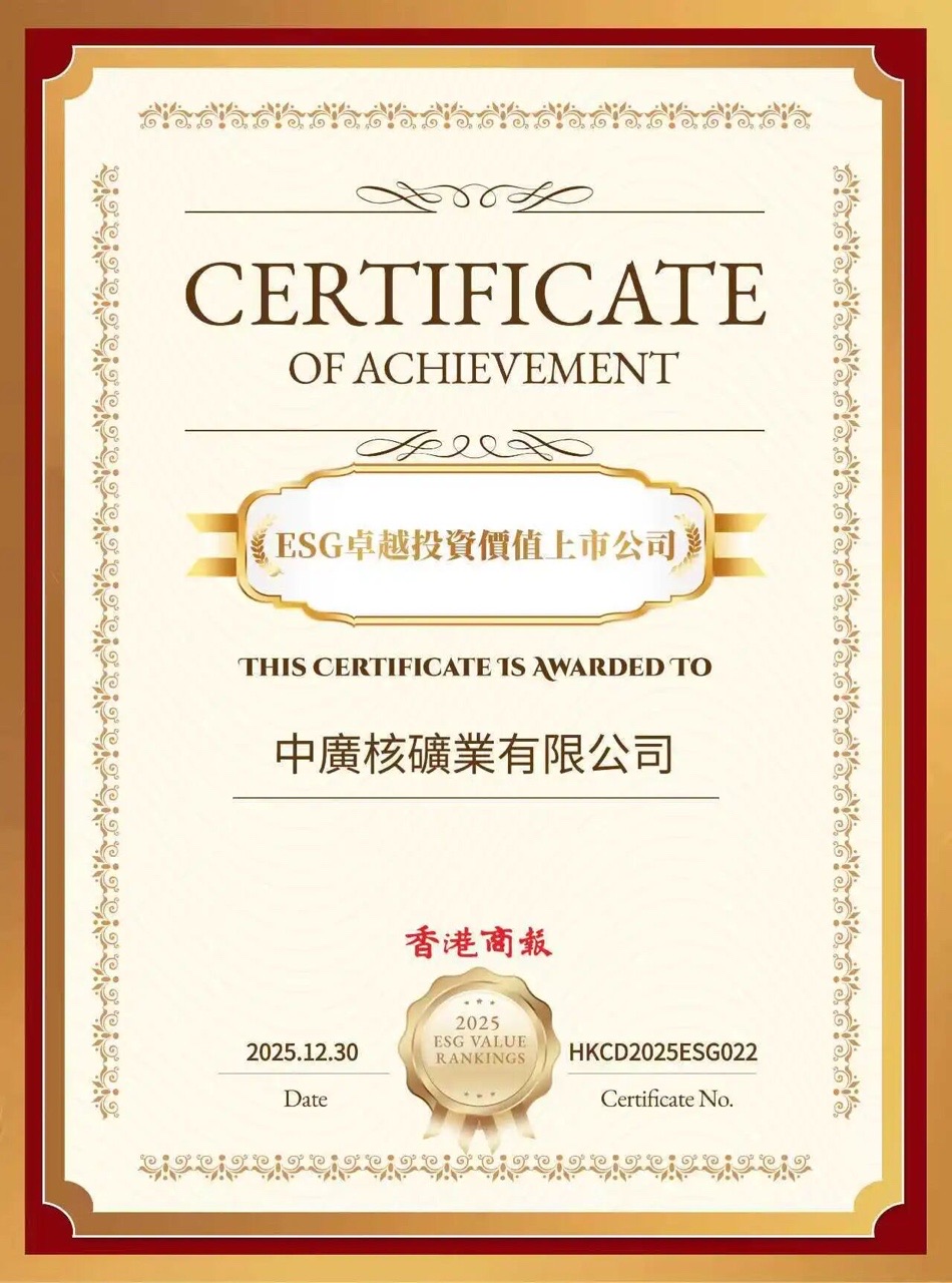 1在ESG治理與溝通體系方面:中廣核礦業始終堅持高標準的合規運作與透明度,建立常態化的投資者溝通機制,及時向資本市場傳遞經營成果與可持續發展戰略。